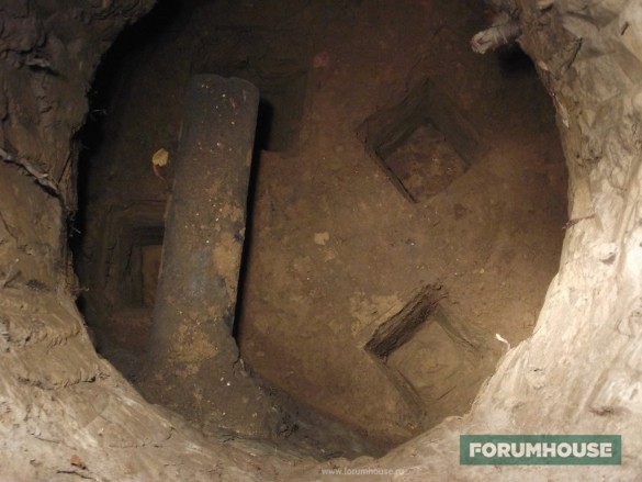 С помощью своего инструмента я пробил шурфы в фильтрующем колодце септика. Рядом стоит береза, поэтому особо не развернёшься. Я только немного доработал пробиватель. Вместо круглой трубы приварил профильную трубу сечением 20х20 мм, толщина стенки 1,5 мм. Вес инструмента уменьшился, махать стало легче. Грунт — плотный суглинок. Сначала разрыхлял его штангой, на конец которой приварил лезвие от топорика. Кроме пробивателя, в таком стеснённом месте, как на фото ниже, ничем не подлезть. Думаю, пробивателем можно делать горизонтальные шурфы для прокладки коммуникаций под дорогой, под стеной. Вот мне говорят – купи бур, а я отвечаю, а зачем он мне нужен, если есть чудо-копалка?