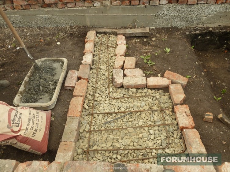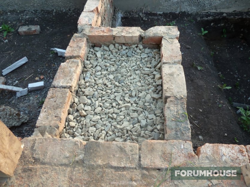 Проверенный тысячами форумчан способ научиться тому, что еще не умел, чтобы на доме поменьше ошибаться – сначала простроить что-то полезное, но небольшое. В данном случае, это бытовка, которая, возможно, превратится в баню, как мы помним, фундамент под нее уже частично залит. Тоже своими руками, но не только из-за экономии денег и в качестве учебного пособия, но и из-за отсутствия вменяемых исполнителей. Сначала выложил кирпичный цоколь и сделал фундамент под печь.
