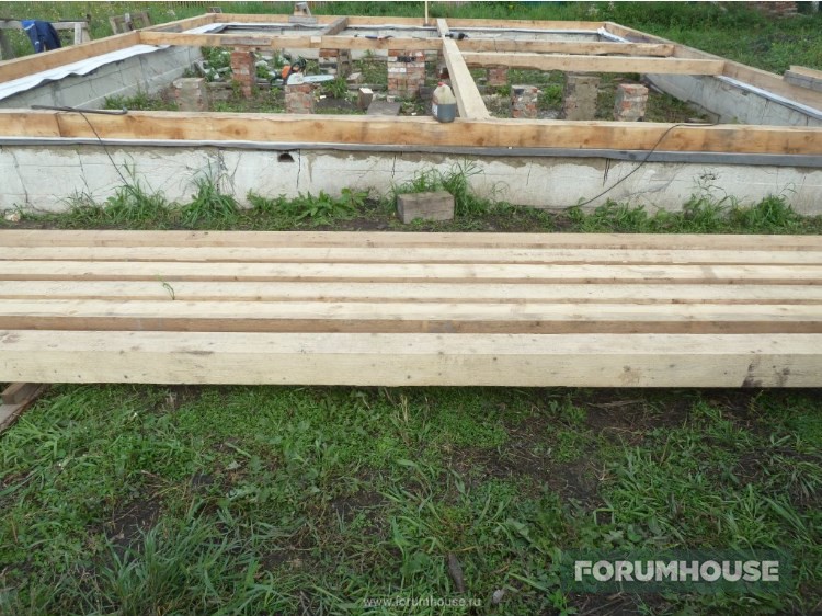 А вот укладку первого венца RNIS77 по совету форумчан сделал на подложку из пенофола для температурного разделения. Когда венец был уложен, привезли первую партию бруса и стройка потихоньку продолжилась.