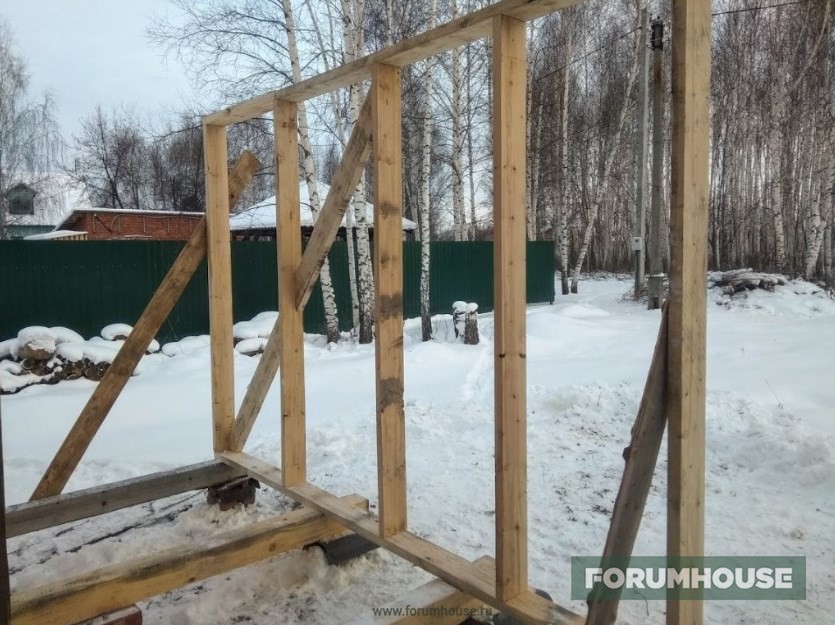 Ноябрь, морозы, но кого ими тут испугаешь – строительство каркасной террасы из сухих досок, некогда бывших опалубкой.