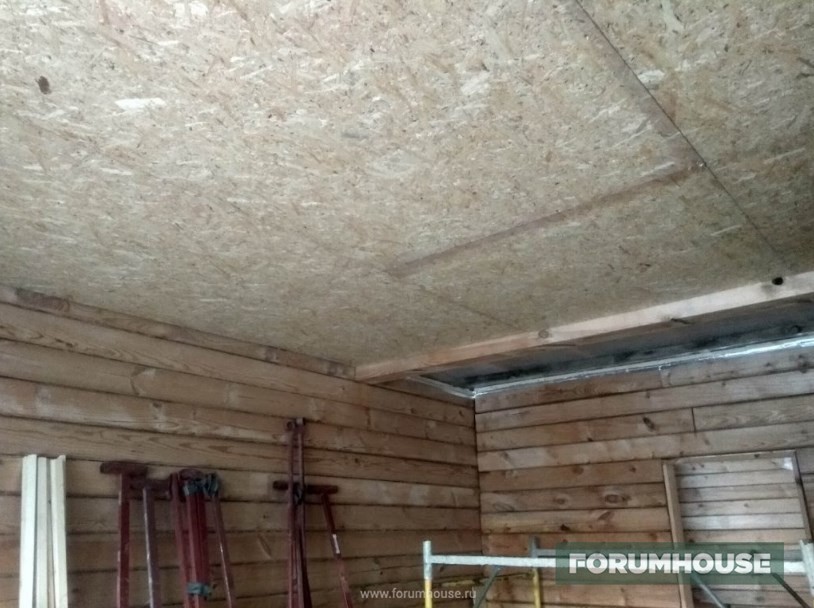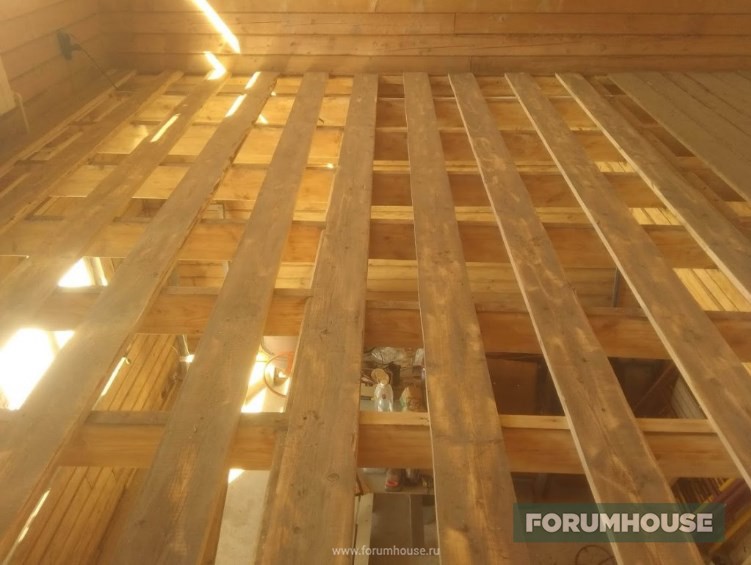 Перекрытие между первым и вторым этажом – цементно-стружечные плиты по обрешетке вместо черновой доски.