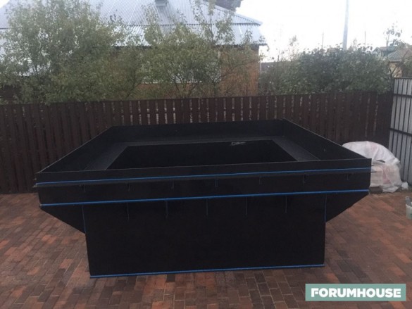 С прудом была целая история: Arnau считал, что в сад с четкими линиями нужен геометрически правильный пруд, и сразу «не хотел ничего городить с пленкой или бутилкаучуком». Поэтому он решил заказать готовый пруд из полипропилена. Оказалось, что из полипропилена пруды не делают – но стоило в поисковике заменить «пруд» на «бассейн», сразу выпала туча ссылок, и емкость из листового черного полипропилена сварили за восемь дней. Два года назад чаша стоила 93 000 рублей. Пластиковая кромка чаши закрыта мощением – когда оно хотя бы полсантиметра нависает над кромкой пруда, это выглядит естественно.