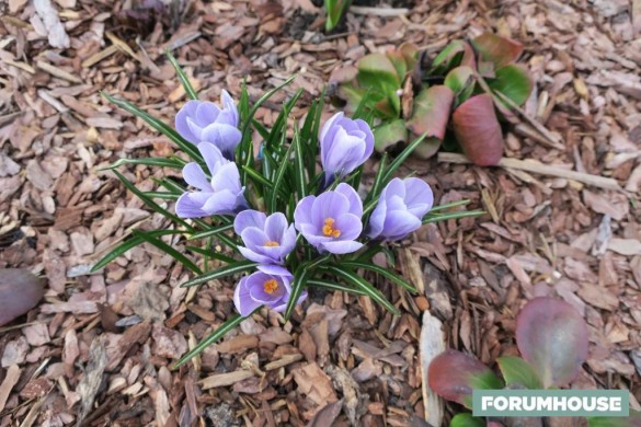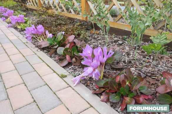 Во всех «комнатах» сада посажены луковичные: на входной зоне и аллее перед домом крокусы, внутри сиреневого сада ирисы, под ивами тюльпаны, по обе стороны беседки нарциссы, в парадных клумбах – тюльпаны, вокруг гравийной площадки и под критской вазой – крокусы, в длинных цветниках – много колхикума, крокусы, рябчики и мускари.