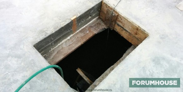 Уровень грунтовых вод низкий – на соседском участке в процессе геологических исследований вода не обнаружилась даже на 2,5 метрах глубины. Тем не менее, Swift099 решил подстраховаться и в погребе сразу заложить водосборник – яма глубиной 0,5 м, габаритами 0,7×0,7 м, засыпанная щебнем, в дальнем углу. Водосборник пригодился неожиданно быстро. Габариты погреба привязаны к размерам плит ЦСП, использованных в качестве опалубки – 3,2×2,6 м и 1,84 м высота.