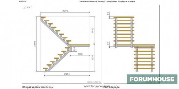 В начале мая стартовал второй этаж, и возникла необходимость в лестнице. Параметры конструкции Swift099 рассчитал в онлайн калькуляторе.