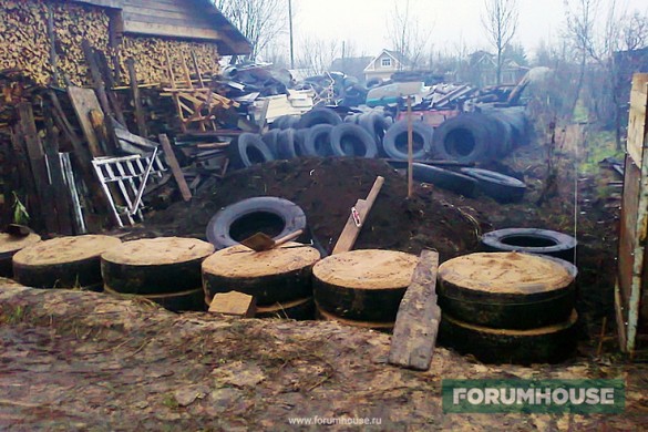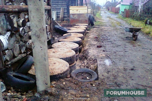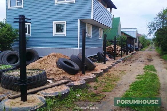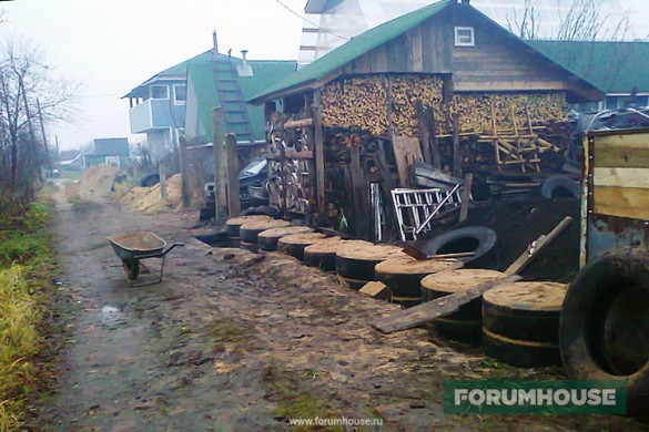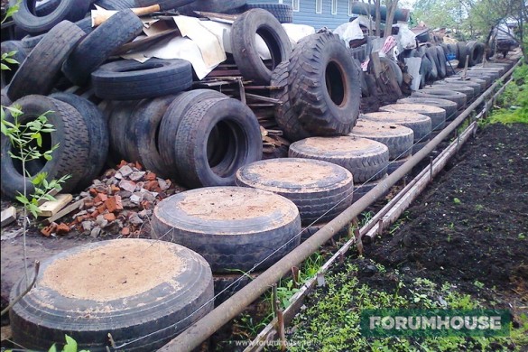 Добавим, что на основе автопокрышек пользователь сделал фундамент под дом и хозяйственные постройки, а также под забор.