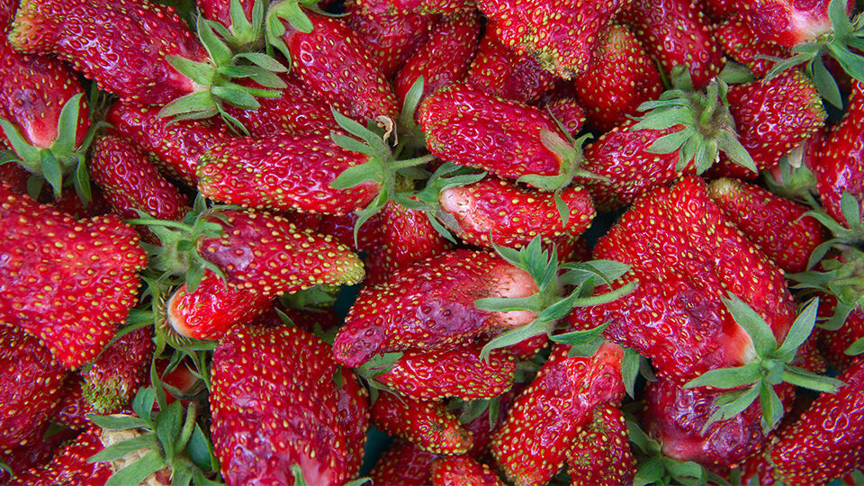 Но больше всего в этом сорте поражают ягоды. Во-первых, формой – они продолговатые, практически цилиндрические, что очень необычно для клубники. Во-вторых, размером – они могут достигать массы 25 г! Размером со сливу! (Правда, только первые ягодки – в дальнейшем, особенно в засушливых условиях, они вырастают мельче – в среднем около 3,7 г). В-третьих, цветом – они темные, причем не только снаружи, но и внутри – мякоть у них тоже темно-красная. В-четвертых, вкусом – плоды очень сладкие, ароматные, с явными нотками земляники, за что дегустаторы поставили им максимальную оценку.