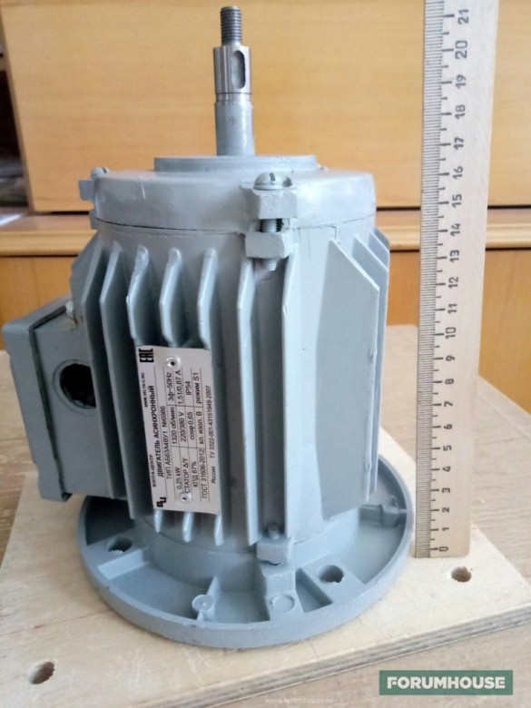 Асинхронный трехфазный электродвигатель, переделанный на питание от сети 220 В.