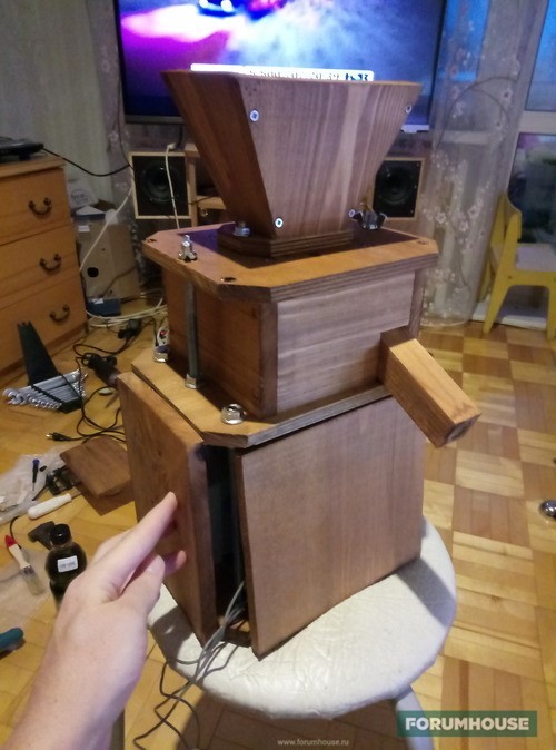 Корпус мельницы ringo_roma сделал из фанеры, четырёх резьбовых шпилек, гаек и пластиковый бутылки.