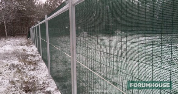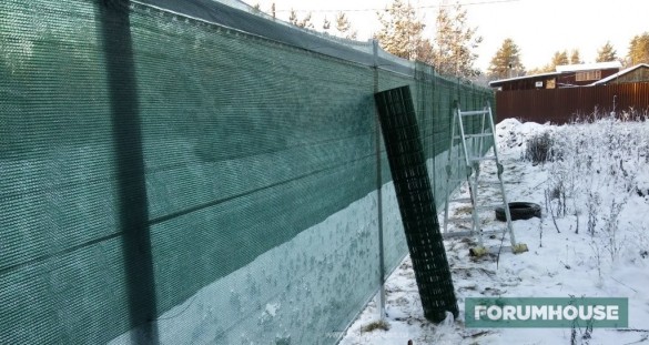 Чтобы уменьшить прозрачность плотна забора, пользователь натянул второй слой сетки.