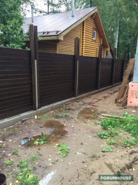Забор с деревянным заполнением пролётов на ленточном фундаменте grankin.
