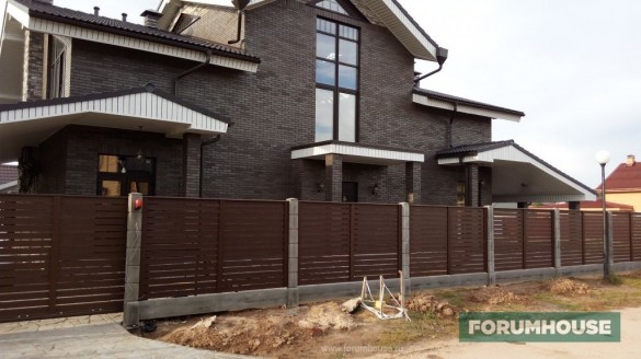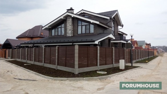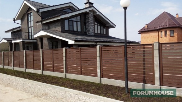 Забор должен сочетаться с материалом, которым отделаны стены и с кровельным покрытием.