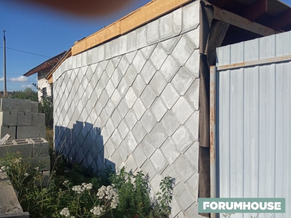 А пока похожий проект реализует второй наш пользователь, с ником СижунаКрыше. Из подручных материалов он строит туалет с большим навесом под садовый инвентарь. Собрал остатки от стройки дома, докупил некондиционный крученый лес, почистил, состарил. За копейки приобрел шиферные доски для грядок, порезал на плитки и отделывает ими кровлю и фасад.